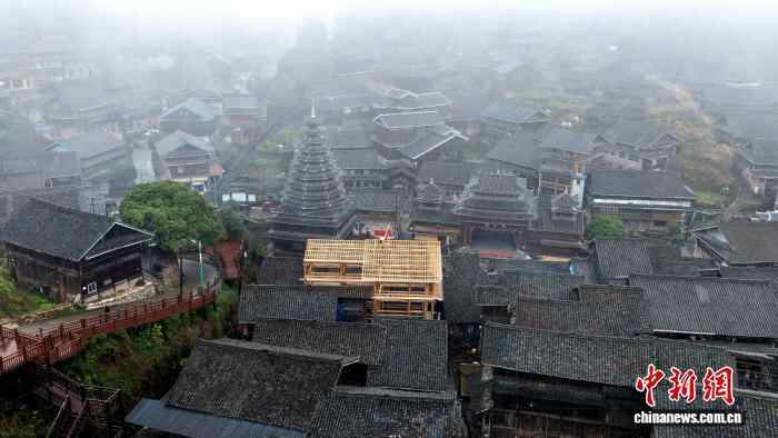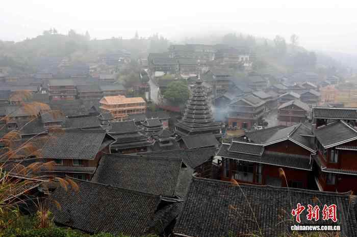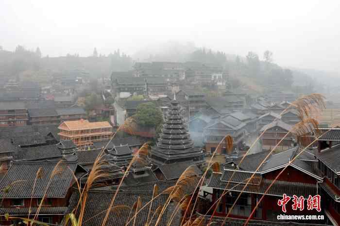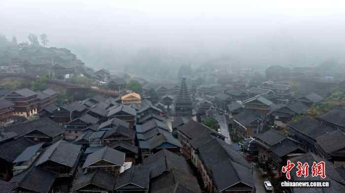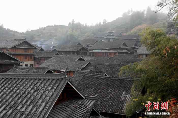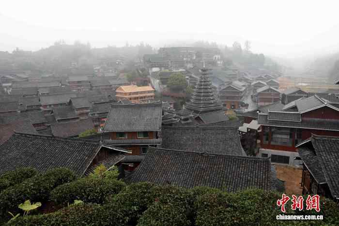 12月12日,广西三江侗族自治县林溪镇高友村细雨如纱、薄雾轻笼,错落有致的吊脚木楼与鼓楼在云雾间若隐若现,与朦胧山水相映成趣,宛如一幅水墨画卷,展现出侗寨冬日独有的静谧诗意与传统韵味。图为烟雨侗寨景致。龚普康 摄