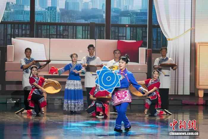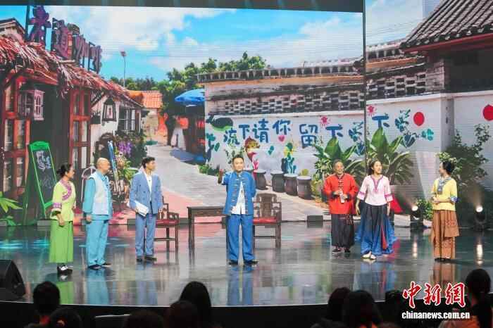 12月12日,2025年广西非遗进院团活动集中展演在南宁精彩上演。活动自今年7月启动,由广西具有非遗代表性项目传承能力和自主意愿的各类文艺院团对非遗代表性项目进行挖掘整理和作品创作。经过层层筛选,20个聚焦濒危、亟需保护的非遗项目的作品入选当日的集中展演。图为由广西戏剧院创作,反映北海市流下村通过发展民宿产业转型为热门文艺旅游目的地的彩调剧《流下·留下》。中新社记者 陈冠言 摄