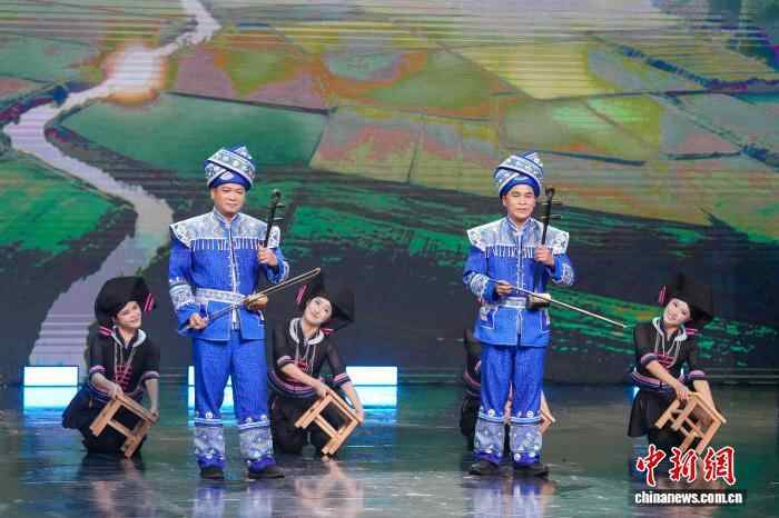 12月12日,2025年广西非遗进院团活动集中展演在南宁精彩上演。活动自今年7月启动,由广西具有非遗代表性项目传承能力和自主意愿的各类文艺院团对非遗代表性项目进行挖掘整理和作品创作。经过层层筛选,20个聚焦濒危、亟需保护的非遗项目的作品入选当日的集中展演。图为壮族嘹歌《呜哇那》。中新社记者 陈冠言 摄