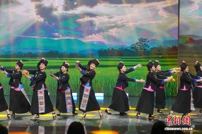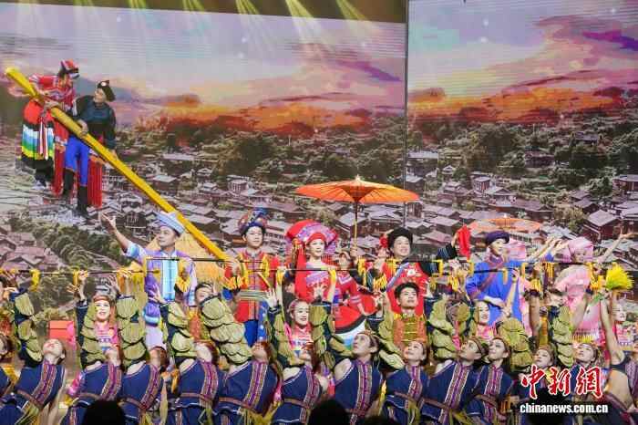12月12日,2025年广西非遗进院团活动集中展演在南宁精彩上演。活动自今年7月启动,由广西具有非遗代表性项目传承能力和自主意愿的各类文艺院团对非遗代表性项目进行挖掘整理和作品创作。经过层层筛选,20个聚焦濒危、亟需保护的非遗项目的作品入选当日的集中展演。图为全体演员上演侗族多耶《同心圆》。中新社记者 陈冠言 摄