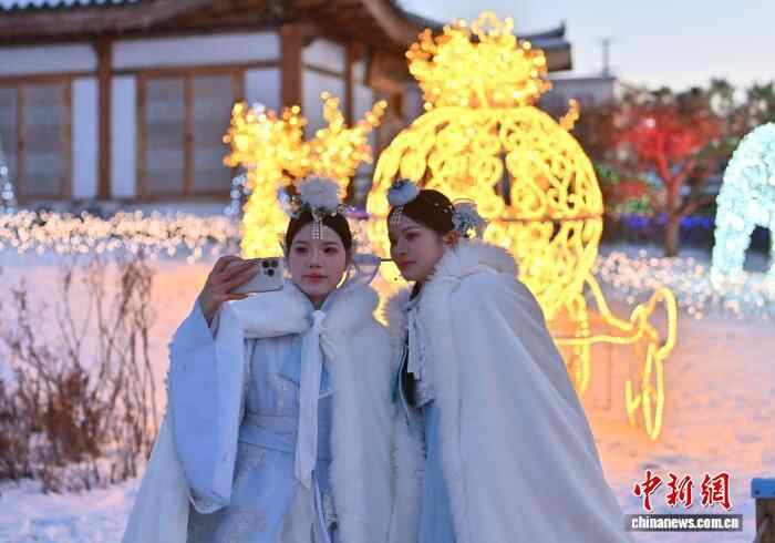 延吉民俗园旅拍火热 冰雪难挡游客热情