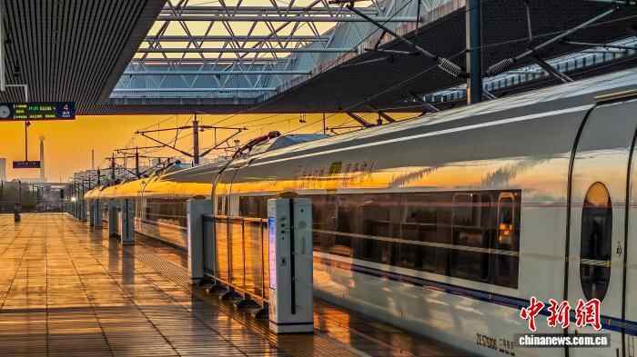 图为夕阳下的高铁站台洒满霞光。任伟峰 摄