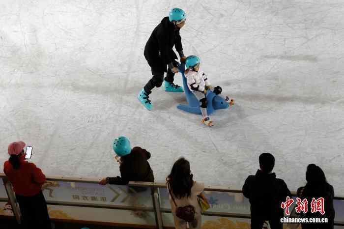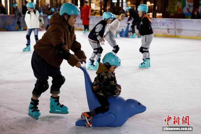 12月1日晚,游客带着孩子在滑冰。中新社记者 殷立勤 摄