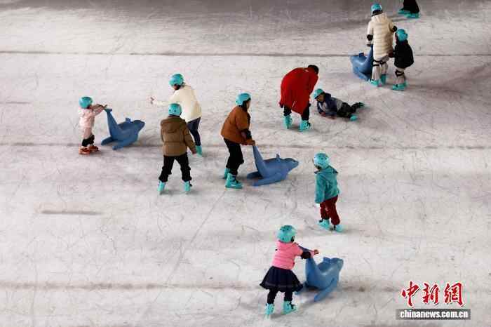 12月1日晚,游客带着孩子在滑冰。中新社记者 殷立勤 摄