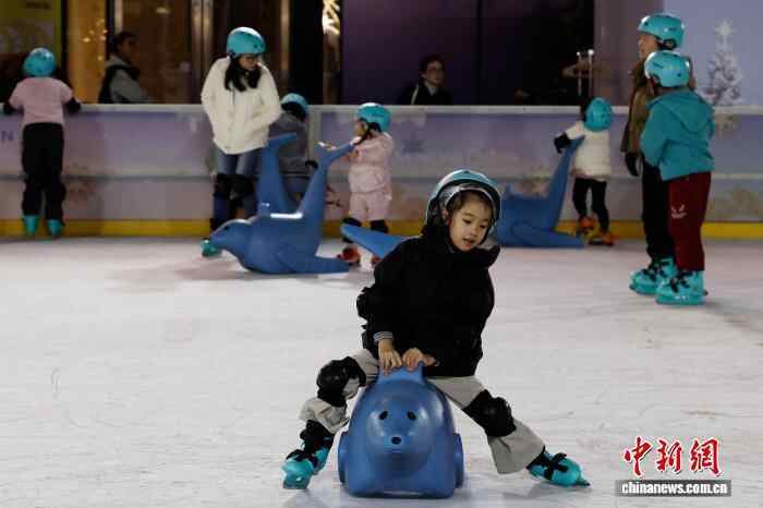 12月1日晚,孩子在滑冰。中新社记者 殷立勤 摄