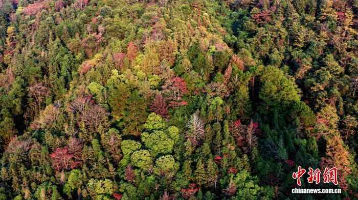 图为三江厘金滩水电站一带“彩虹森林”色彩斑斓。龚普康 摄
