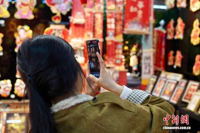 12月6日,商户与采购商打视频电话,协助其选购马年年画。中新社记者 董易鑫 摄