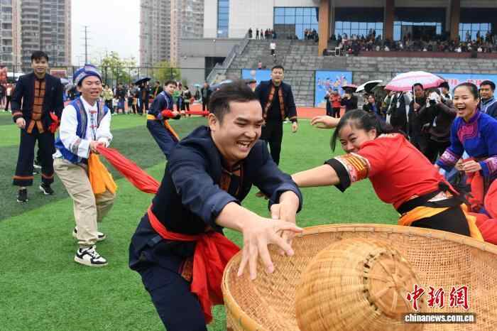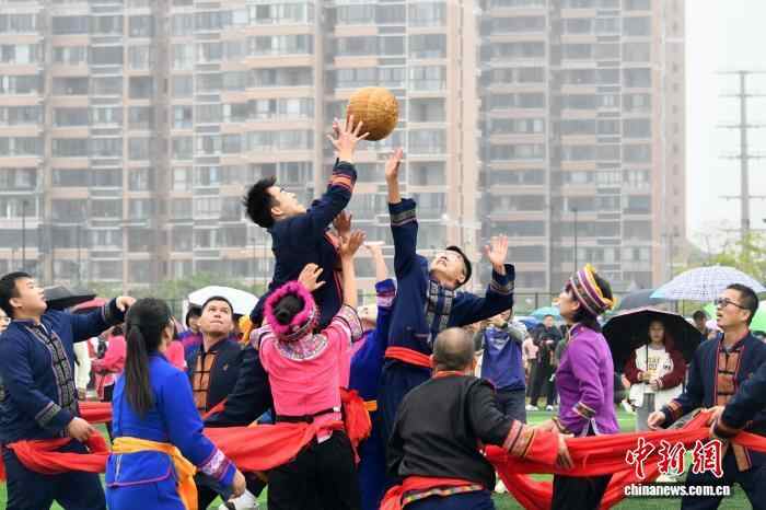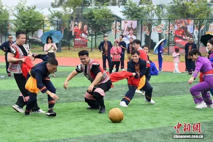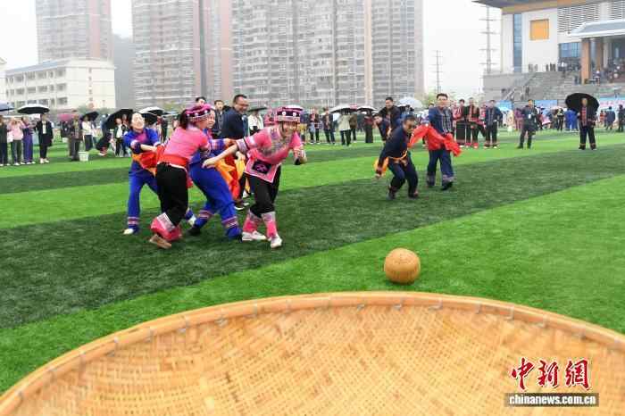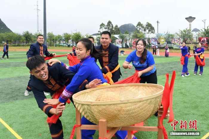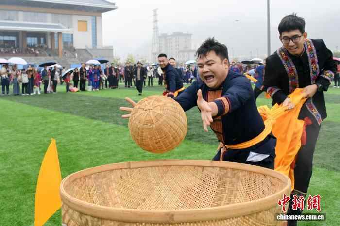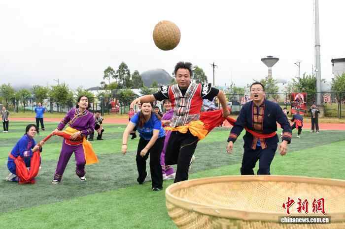 11月8日,民众在广西河池市罗城仫佬族自治县体育中心参加竹球竞技赛。当日,罗城举行竹球竞技赛,民众在运动中体验快乐,传承民族传统体育文化,共同庆祝仫佬族传统节日依饭节。竹球也称“篾球”,球由竹子编制而成,这是流行于当地的民族传统体育项目。图为竹球竞技赛现场。廖光福 摄