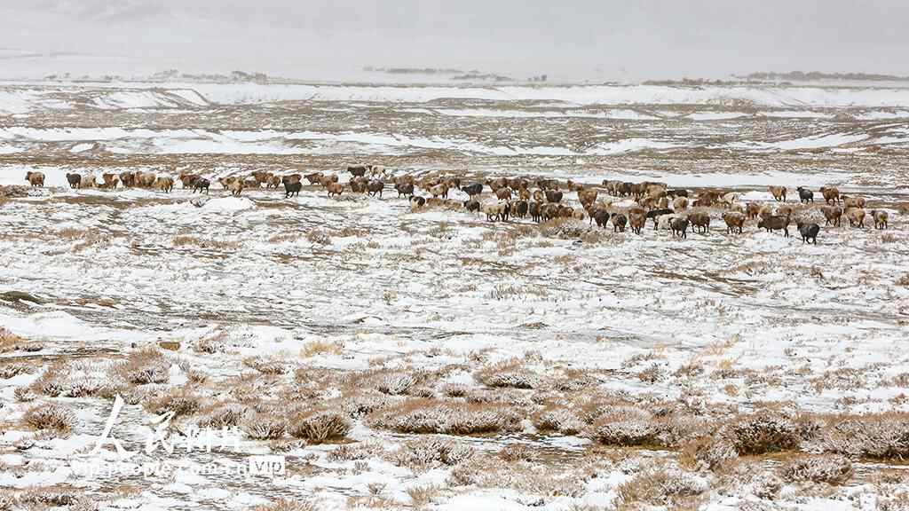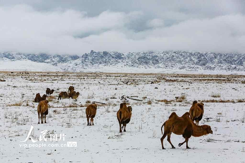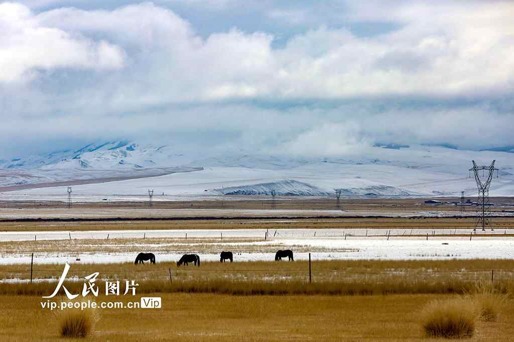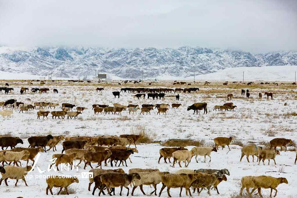 受冷空气影响,新疆自西向东沿天山一带迎来风雪降温天气,部分地区出现中到大雪,草原上的牧草被白雪覆盖,景美如画。蔡增乐摄(人民图片网)