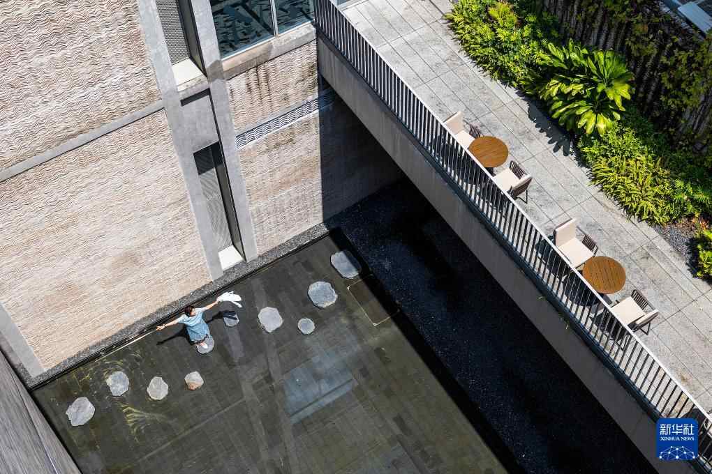 9月13日,游客在塱头村春阳台艺文中心拍照。
