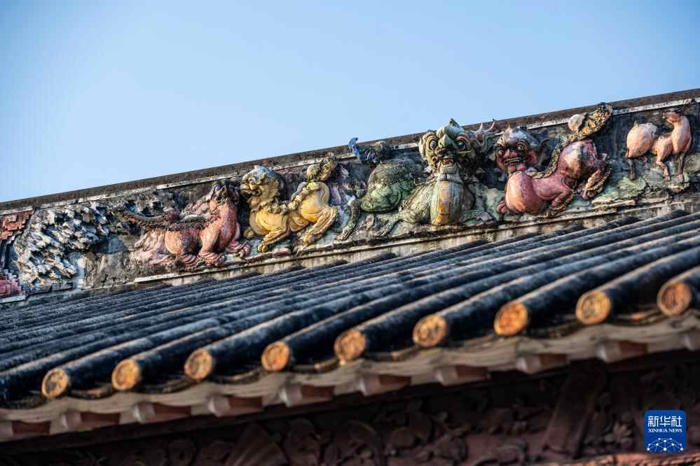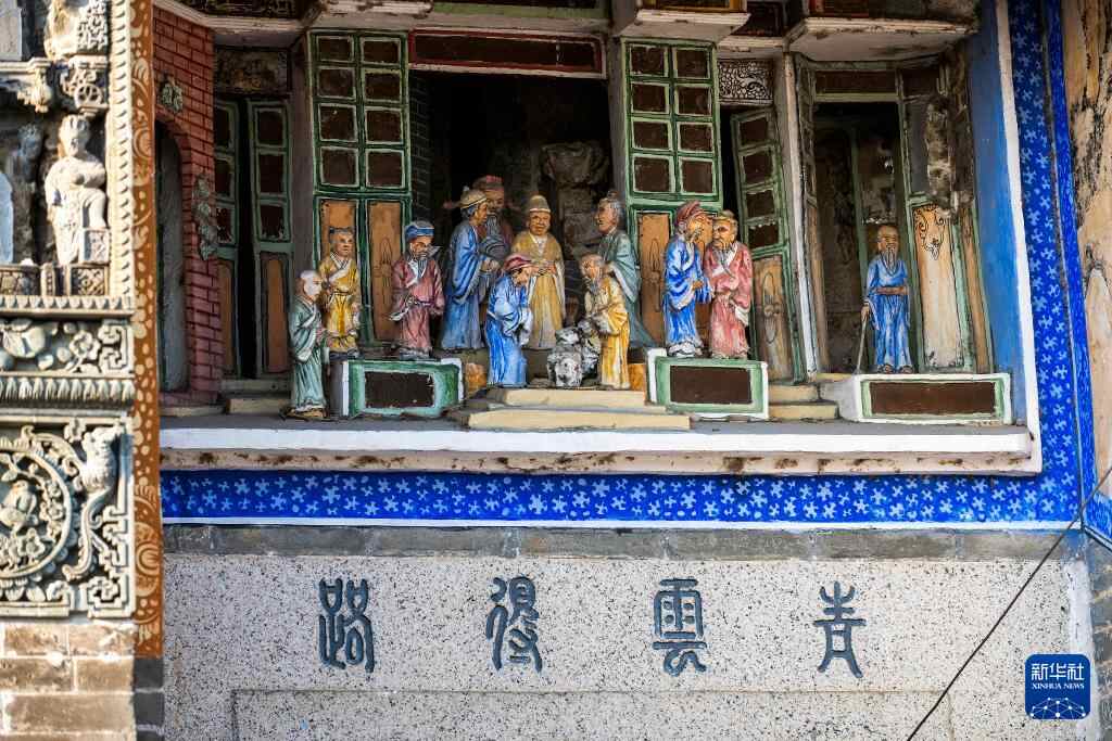 这是9月13日在塱头村积墨楼拍摄的灰塑装饰。