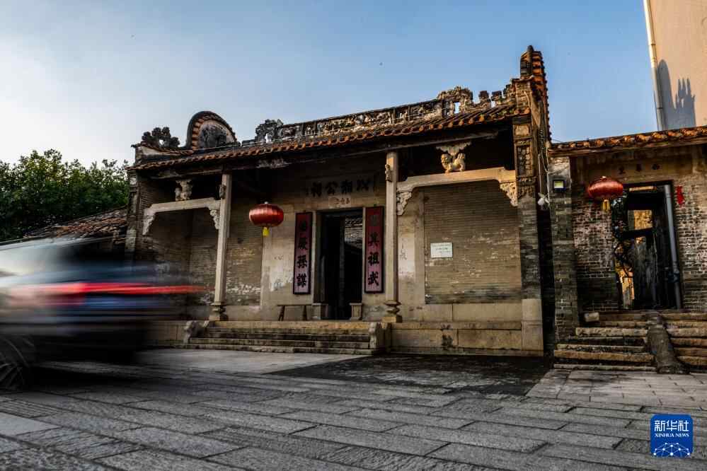 9月13日,一辆汽车经过塱头村的以湘公祠。
