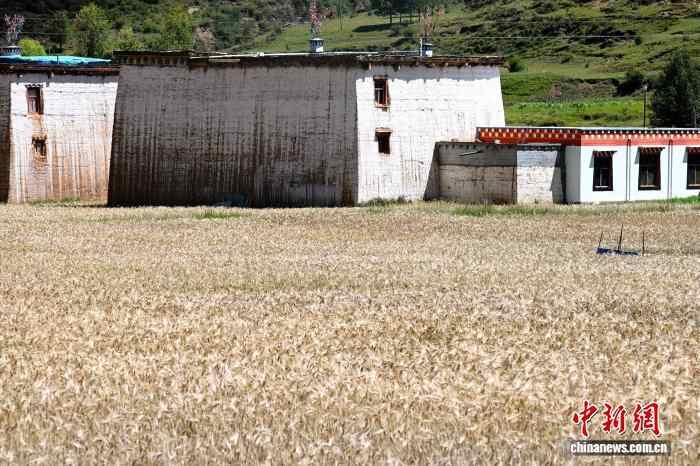 9月14日,初秋时节,四川省甘孜州乡城县正斗村千亩青稞成熟,即将迎来收割。村内一栋栋白藏房与成片青稞相映生辉,构成一幅川西田园画卷。中新社记者 张浪 摄