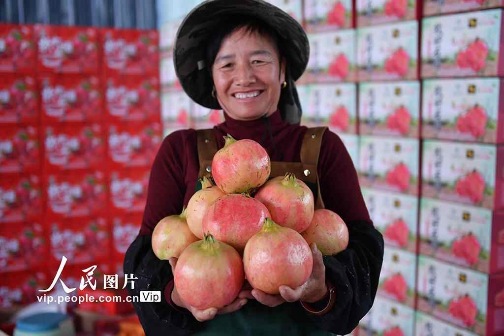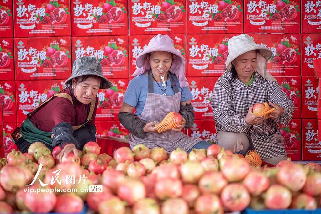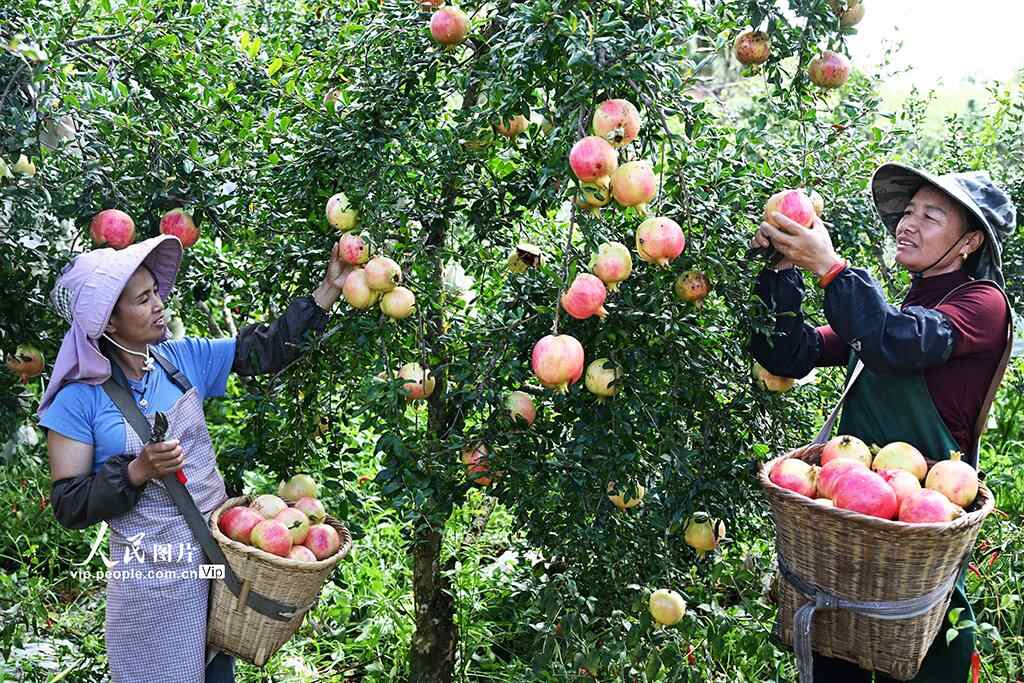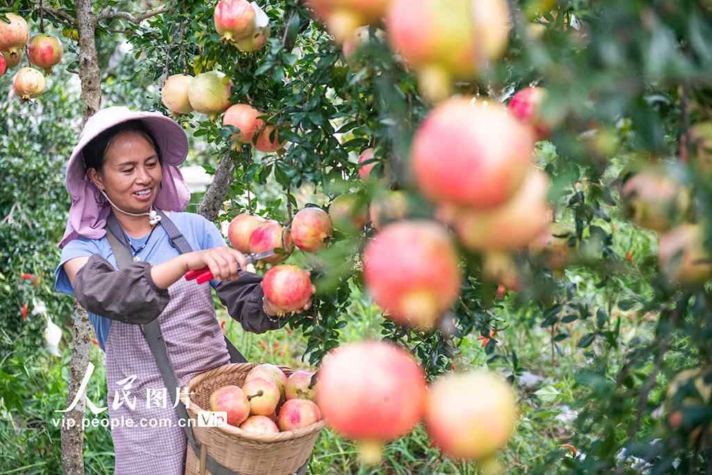 2025年9月7日,云南省文山壮族苗族自治州砚山县稼依镇新朵甲村水果基地的突尼斯软籽石榴喜获丰收,农民加紧采摘、包装。熊平祥摄(人民图片网)