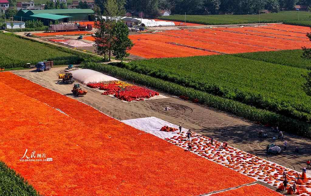 立秋时节,安徽省亳州市谯城区种植的32.5万亩辣椒陆续迎来收获期,村民抢抓晴好天气,加紧进行辣椒的采收、晾晒等工作,火红的辣椒在乡村田野织成一道美丽的风景线。